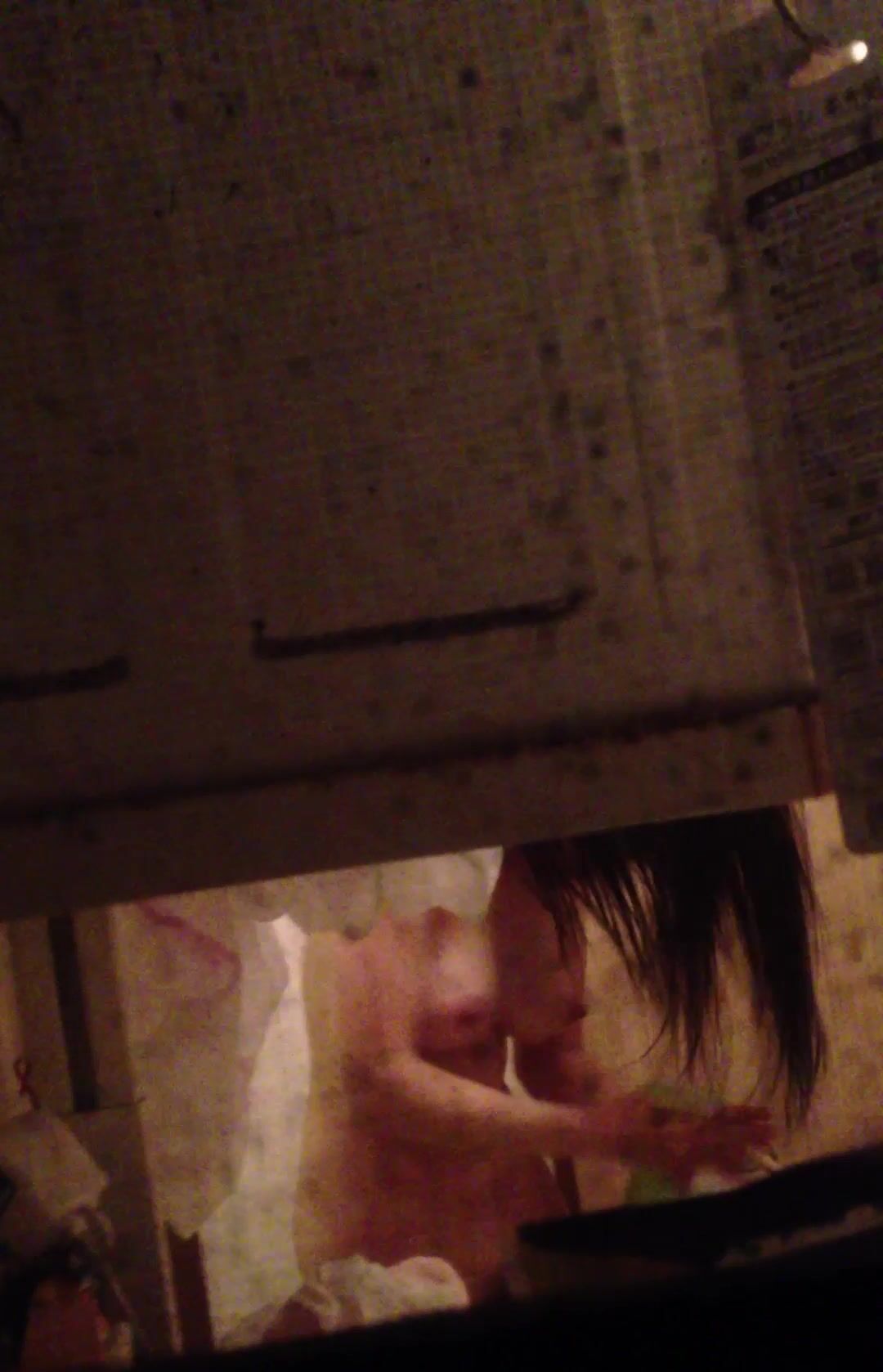 爬窗偷拍白嫩大奶少婦洗澡