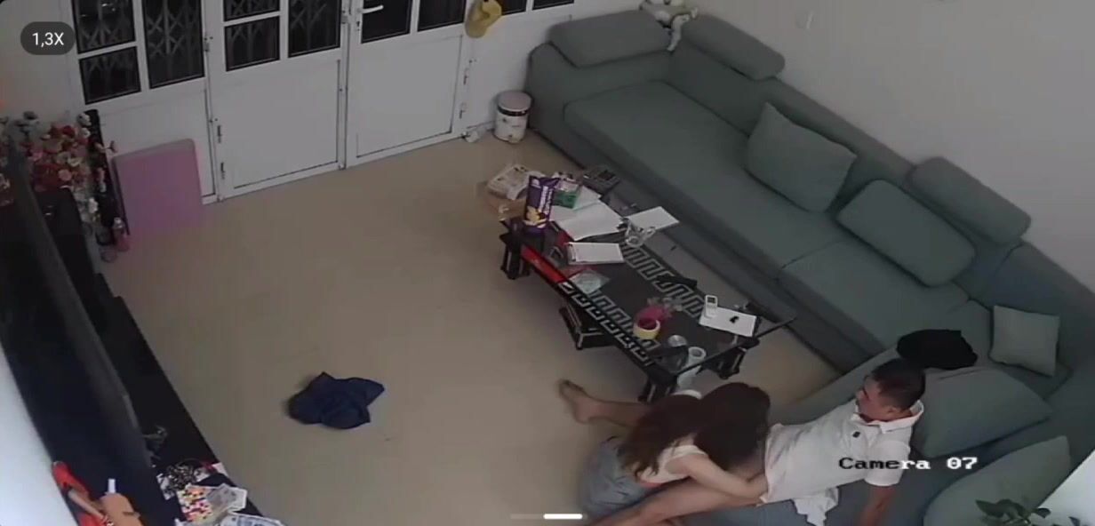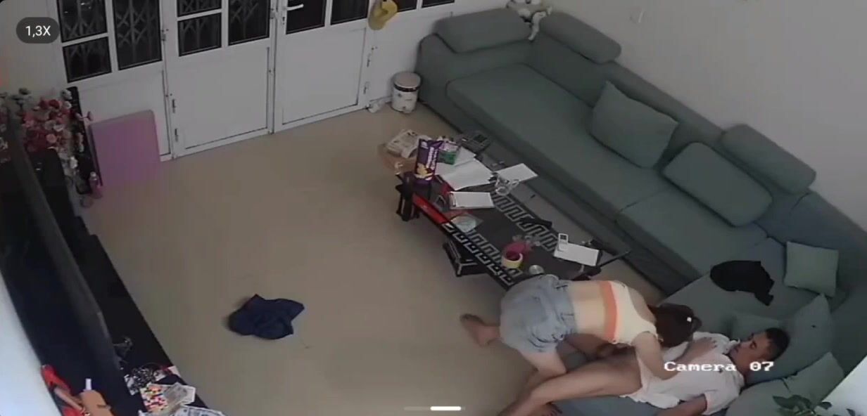 家庭網路攝影機偷拍 老公下班回家 媳婦拔下他的褲子 口硬他的雞巴 在客廳沙發激情來一發洩慾