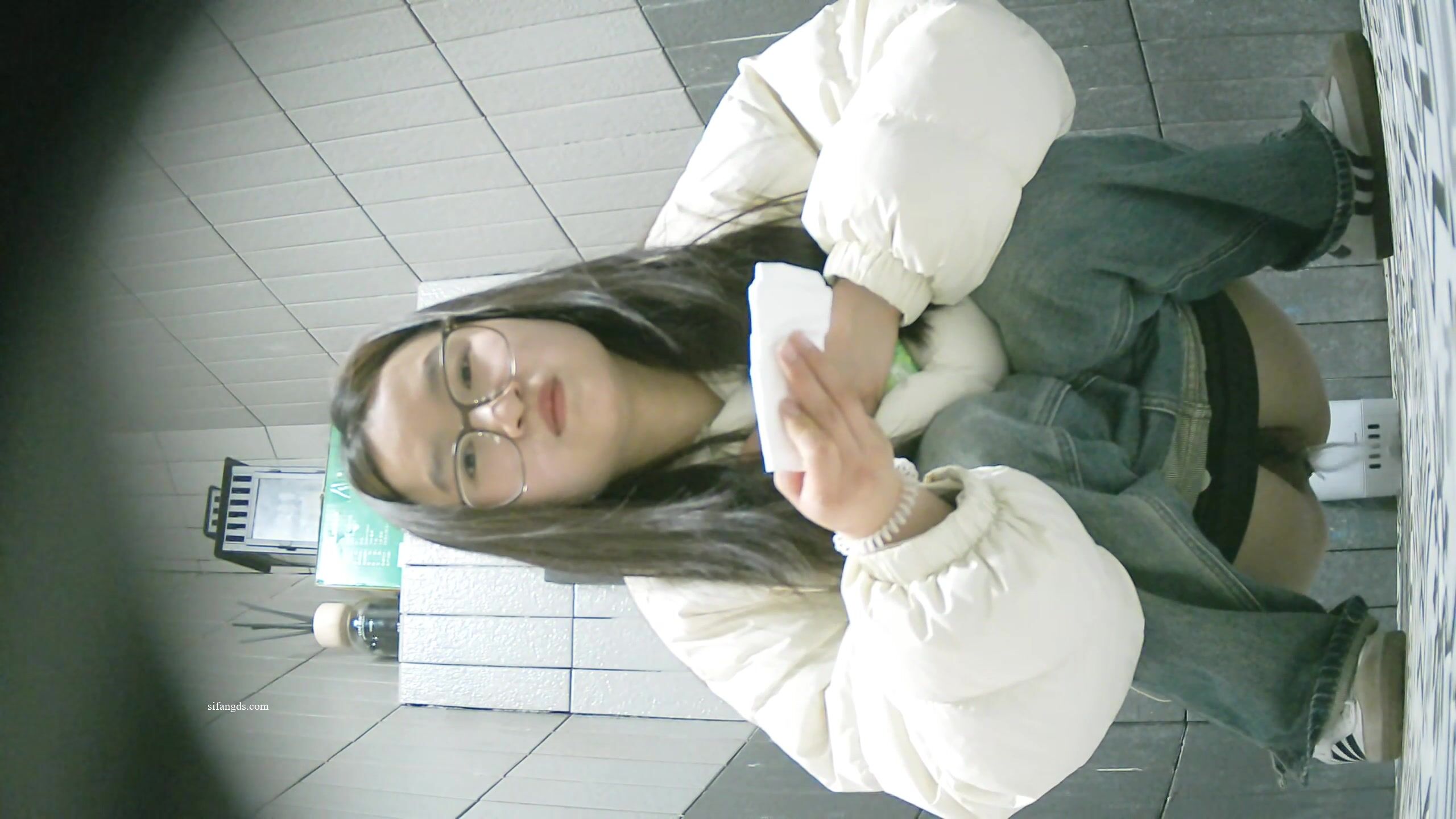 【廁拍】全景前後雙角度 極品無毛白虎 -04