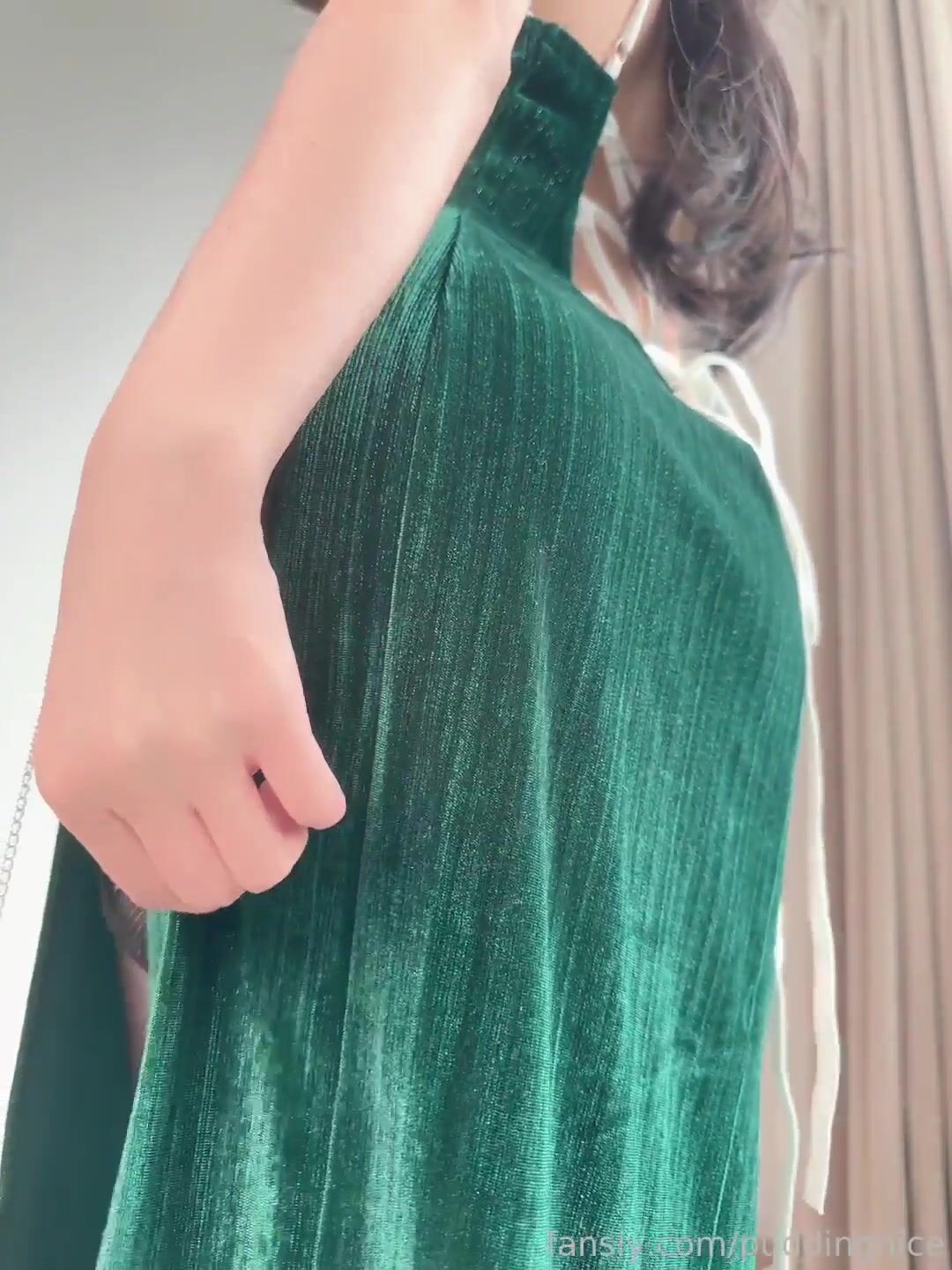 布丁大法-綠色貴婦裙+過膝黑絲 熟女の色気